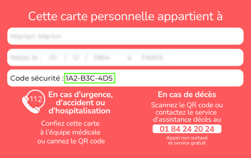 Pour consulter les informations d'urgence, veuillez saisir le code de sécurité situé au dos de la carte scannée :